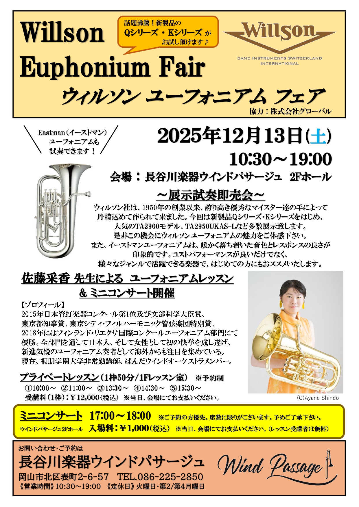 - 1/25(土)~26(日)ウィルソンユーフォニアムフェア開催♪