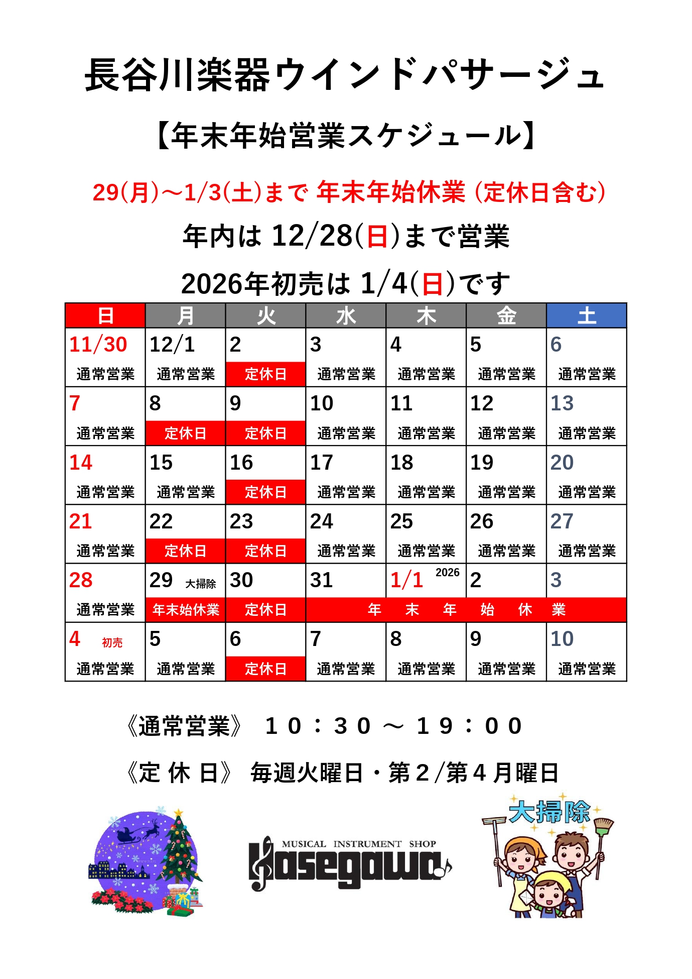 - 年末年始営業スケジュールのご案内♪